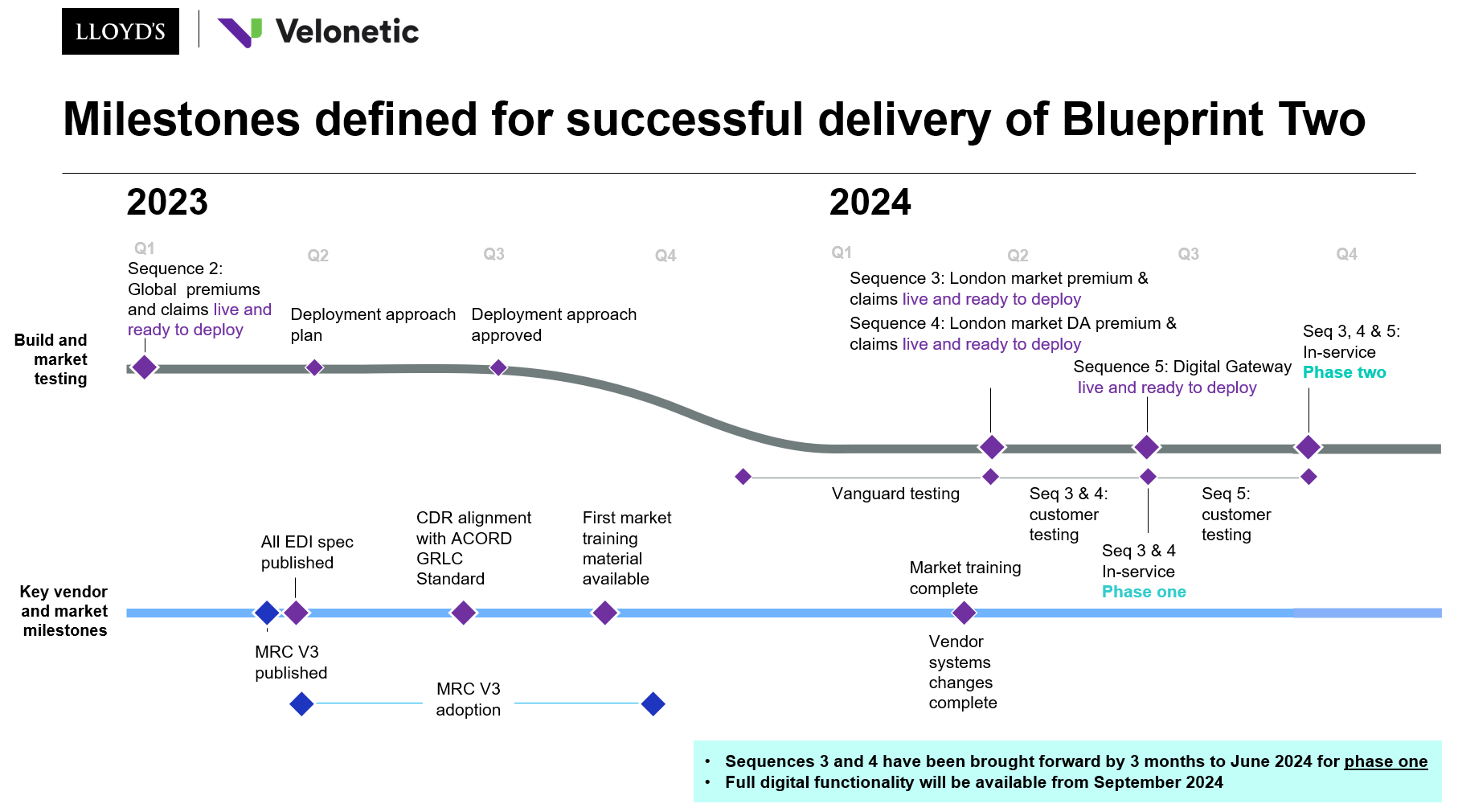 Sequence 3 – the London market premium and claims processing services are on track to be live and in-service for market firms at the end of June 2024 (in parallel with Sequence 4).